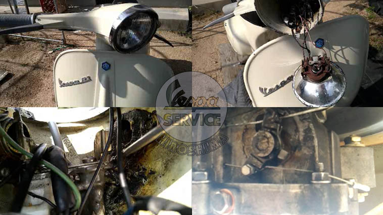 で、お店に到着してからは、修理するVESPAを軽トラに積み込み