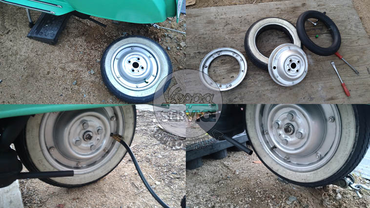 ついでに後輪がパンクしていた通勤用のVESPAを持って行って