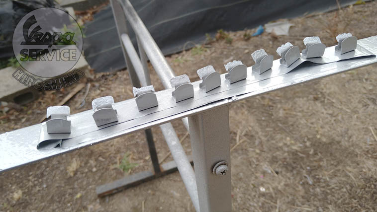 [固定用クリップも軽く錆を剥いで、シルバーに塗っておくことにしました。]