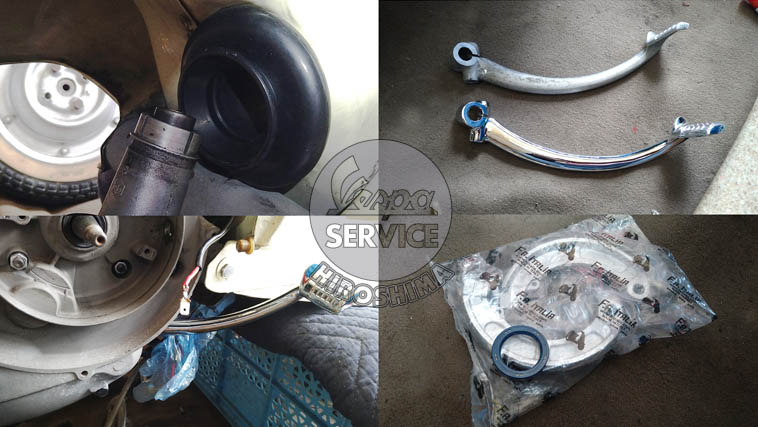 キックペダルはメッキカスタム品に交換して、リアブレーキシューを含め