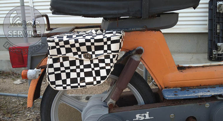 [こちらはVESPAのモペッドSiに装着した際のイメージ写真です。