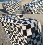 いかにも60年代のフランスっぽいチェック柄のポップで可愛いデザインです。]