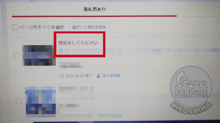 『落札者から支払いが行われました。商品を発送してください。』の文字の下に